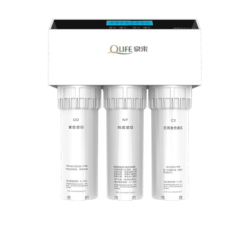 納濾膜、六級(jí)過濾、自吸泵、雙出水、LED屏、換芯提示、水質(zhì)監(jiān)測(cè)、節(jié)水2:1、免焊接集成水路板